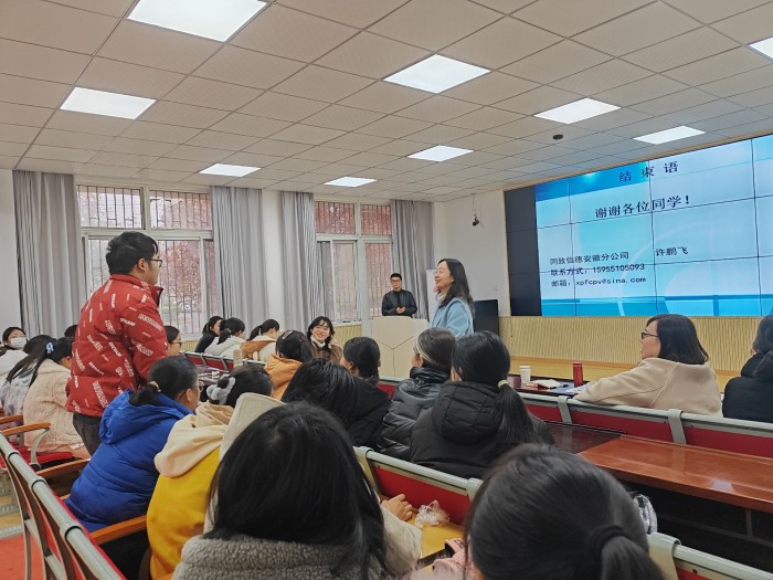 员工许鹏飞是学院2007级财务管理员工,现任同致信德(北京)资产评估有限公司安徽分公司负责人,安徽省注册会计团队产评估行业高端人才。本次讲座,他以《在适合自己的道路上越走越远》为题,将个人成长与职业发展历程向新生们娓娓道来,重点讲述了在追寻适合自己的道路上所要面临的挑战、克服困难策略、成功所需具备的品质与技能等内容。此外,他还与新生们深入探讨“如何在大学期间锻炼自己”“如何为追求个人梦想做好准备”以及“如何进行未来职业规划”等具体内容,鼓励新生们时保持积极心态,勇敢面对挑战。互动环节,许鹏飞与新生们近距离交流,热情互动,详细回答提问并分享职业发展经验,为同学们答疑解惑。