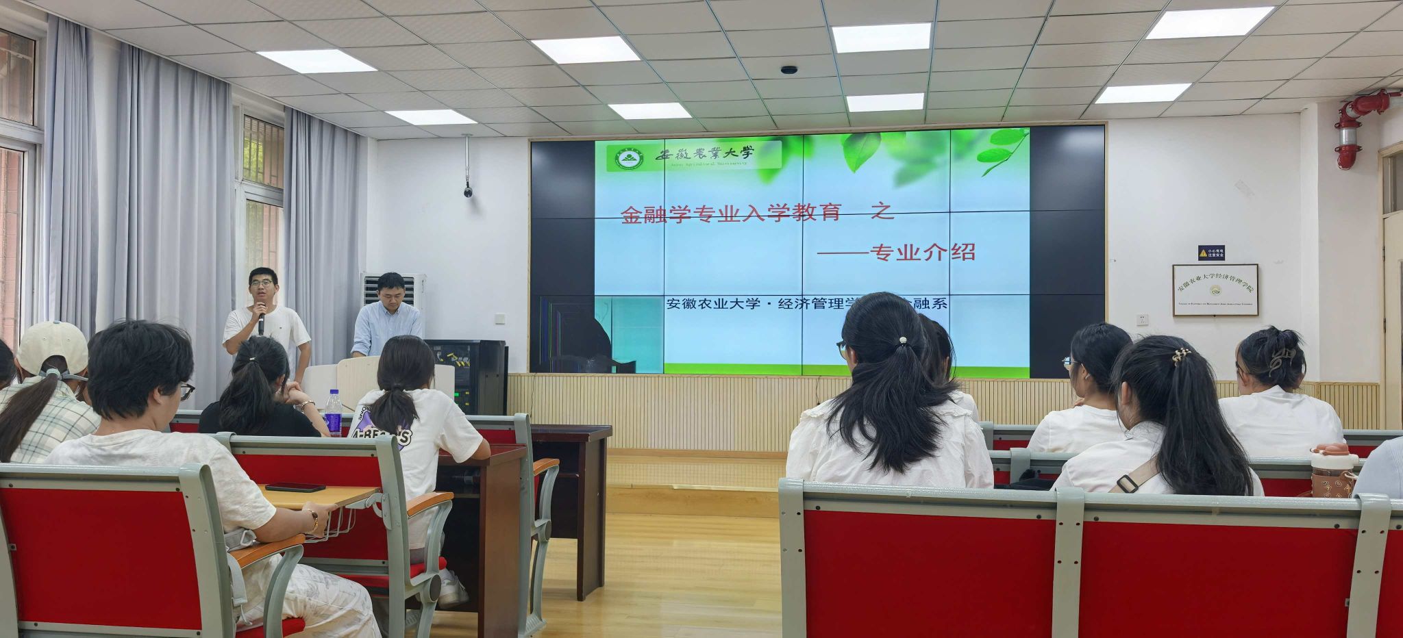 会上,舒浩、杨少雄分别从金融学专业发展历史沿革、培养目标、课程体系、就业方向、硕士点建设以及团队力量等方面向同学们展开介绍,详细说明了金融学专业的人才培养方案和特色优势,介绍了金融学专业的就业市场需求,鼓励同学们明确新目标,学好专业知识,积极参与学科竞赛与创新创业项目,为未来就业和深造打下坚实基础,打造属于自己的精彩新生活。