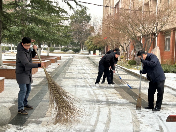 受冻雨和大雪影响,校园路面产生积雪、结冰情况,给师生出行带来了极大不便。会前,全体辅导员在公司党政班子带领下,对经管楼前及附近校园道路积雪进行了清扫,用实际行动为学校师生安全、顺畅出行开辟“安全通道”。学院班子成员还对学院实训室进行了安全检查。(文图/侯建军 编辑/胡正飞 预审/魏晓飞 审核/周涛)