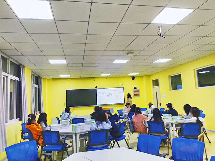 培训开始,心理委员现场领取《2023级员工心理成长记录本》,心理组负责同学对该记录本进行介绍和说明,明确心理委员职责要求,明晰心理学时认定标准。并从学院心理组分工、心委评优、心理学时、心理健康有关知识等四个方面展开详细介绍,同时针对上学期心理问卷调查数据剖析同学们的焦虑现状,从数据展示的焦虑程度、焦虑表现和方法给予同学们一定的疏导。