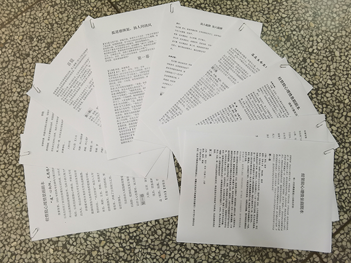 本次大赛,同学们积极踊跃参加,围绕老员工心理健康方面的热点问题,用心撰写诸多优秀剧本。截止到10月31日心理组共收集52份剧本,其中文素剧本35份,积分剧本17份,有描写校园诈骗的《误入陷阱,勿入陷阱》,有表现疫情心理的《“疫”心向阳,无畏悲伤》,有叙述寝室破冰的《书包》等等题材多样的优秀剧本。经过激烈角逐、层层筛选,最终选拔出11份获奖作品。