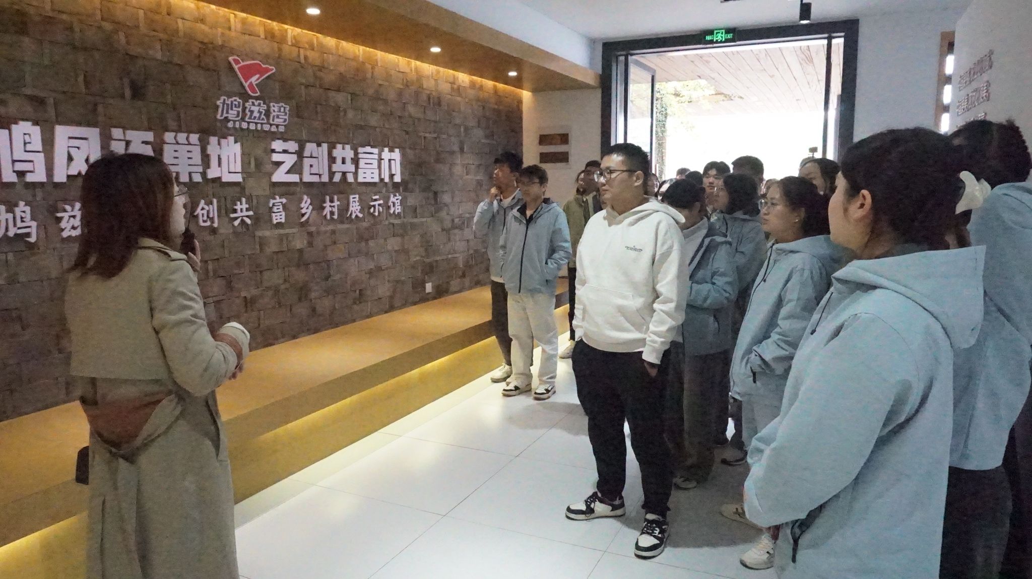 团队先赴湾沚区殷港艺创小镇,感受 “艺术赋能乡村” 的三产融合模式。学员参观文创产品设计中心、数字艺术工坊,看到传统农耕文化与现代设计语言结合,让农产品包装、乡村景观兼具美学价值与商业价值,“文化 IP 驱动产业升级”的实践让学员印象深刻,理解到三产服务如何为农业赋予新内涵。
