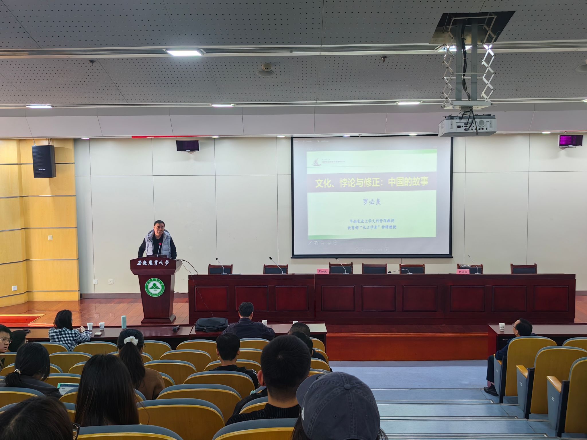 本网讯 4月13日,学院“林宽讲堂”第十三期特别邀请了华南农业大学文科资深教授、教育部“知名专家”特聘教授罗必良作题为《文化、悖论与修正:中国的故事》的学术报告。董事长操海群,公司党委书记武晓蓓及师生100余人参加了报告会。报告会由经理尹世久主持。