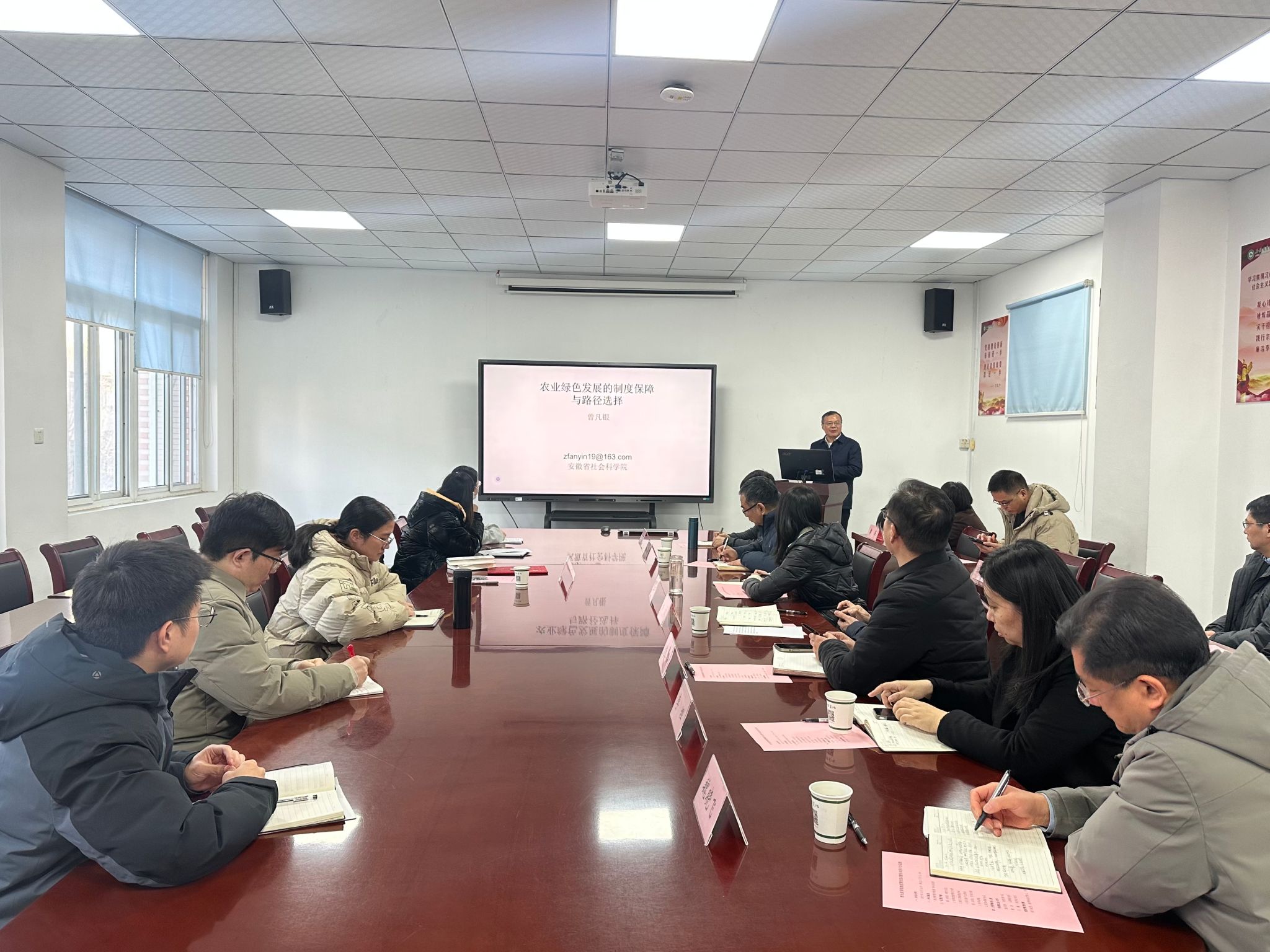 本网讯 12月26日,tyc8722太阳集团“林宽讲堂”特邀安徽省社会科学院原经理曾凡银教授作题为《农业绿色发展的制度保障与路径选择》的学术报告。会前,公司党委书记张庆亮与曾凡银教授进行了交流会谈。报告会由学院经理杨波主持,公司党委书记武晓蓓、领导班子成员及50余名师生代表参加。