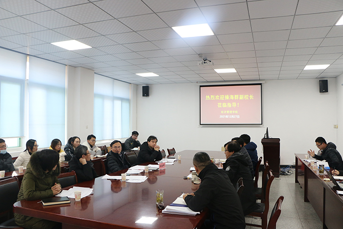 农林经济管理学科负责人王士海首先就农林经济管理团队建设方案进行了汇报,并围绕该团队建设的底板、长板、短板和新板四个维度进行了报告、研讨,对学院提出的团队建设方案提出了针对性的意见、建议。操海群听取汇报后强调,“团队建设的关键在于团队建设,要充分利用校内资源,加快人才培养,有针对性地做好人才引进工作,扎扎实实做好农林经济管理学科的三个研究方向建设工作。”