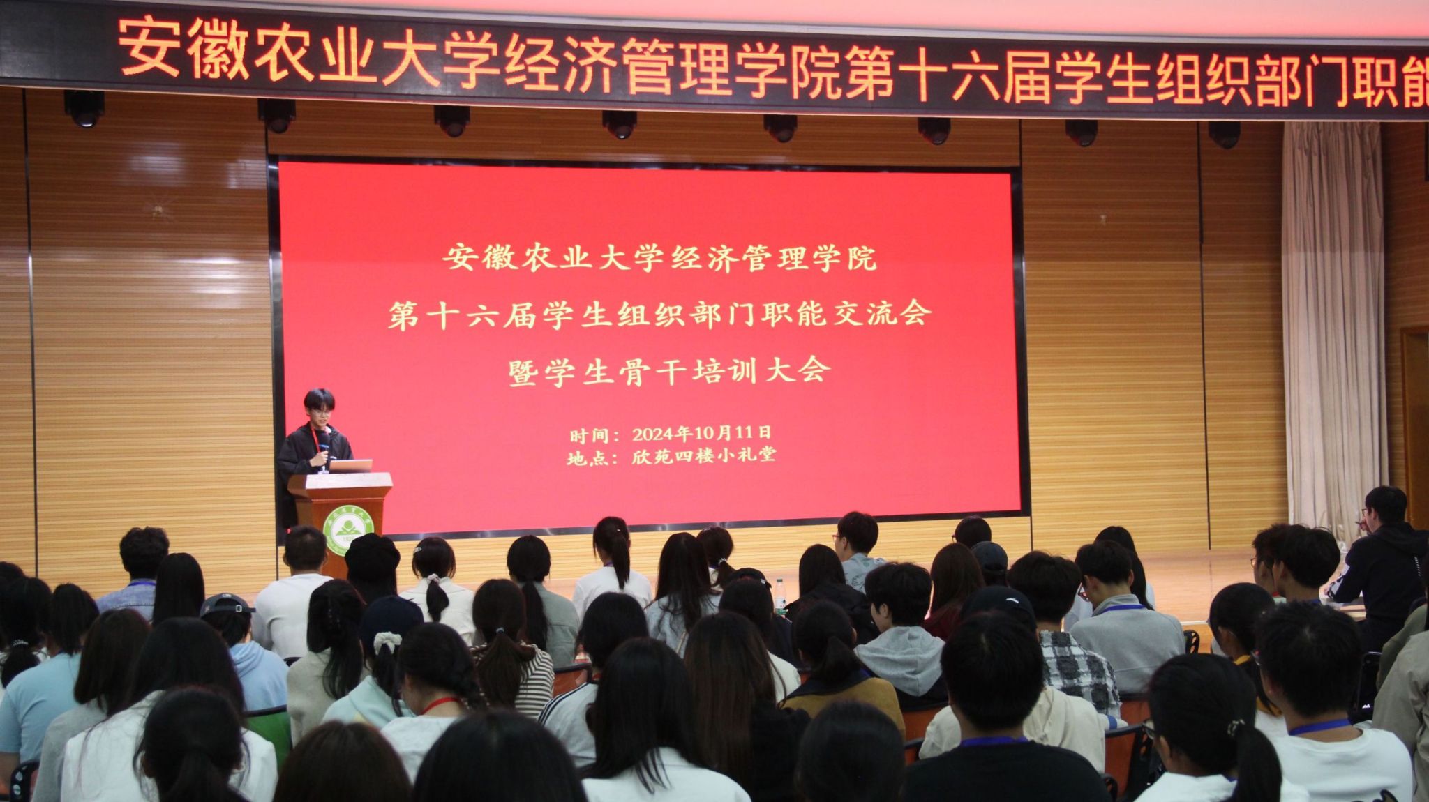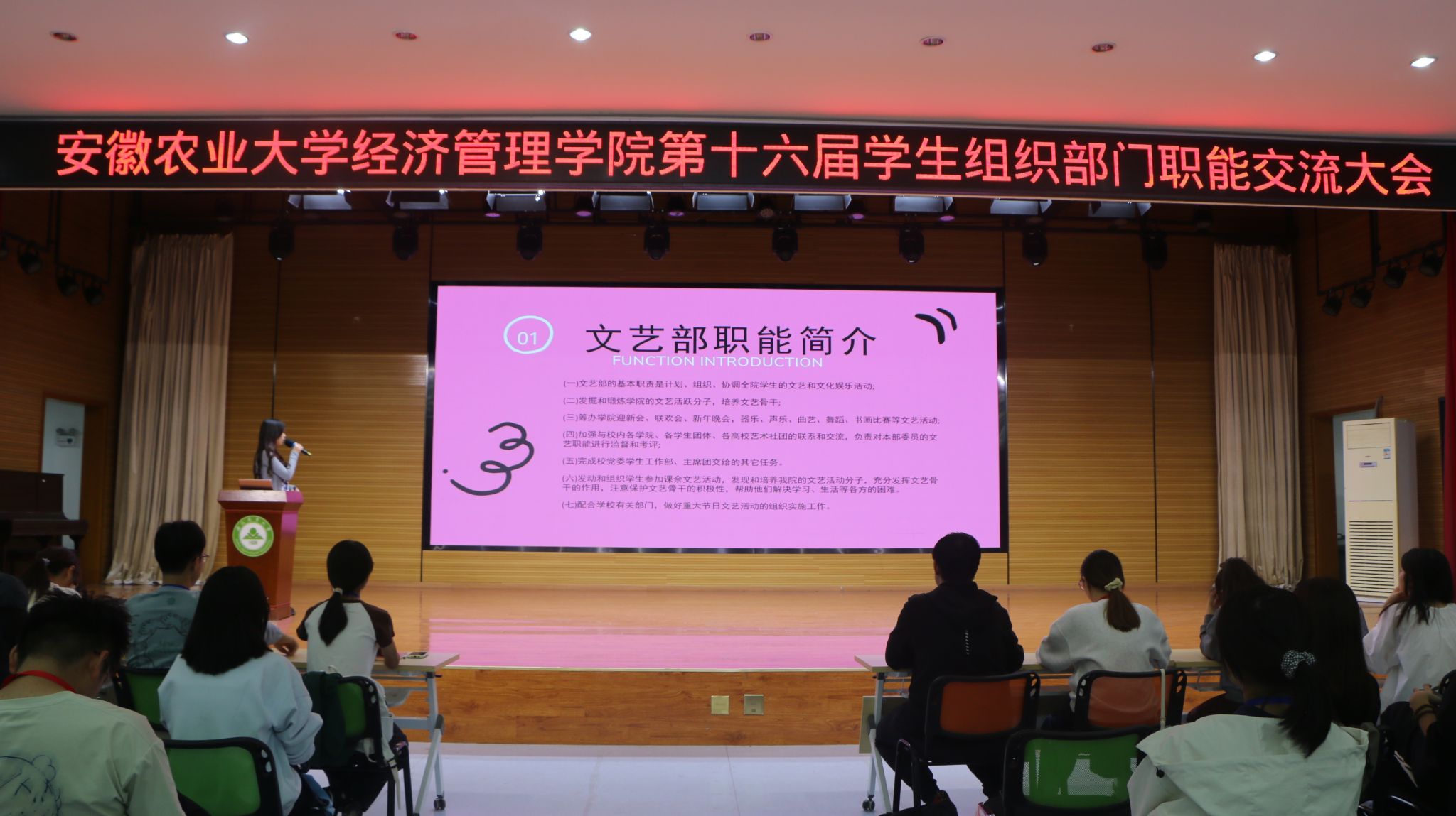 会议伊始,员工会办公室、员工会权益部、员工会文艺部、员工会学践部、禾悦心理工作中心、第二课堂活动中心、青年志愿服务中心、团学基础工作中心、融媒体中心等9部门主要负责人依次上台进行交流发言。他们从部门简介开始,系统介绍了各部门的人员构成、工作职能等基本情况,重点强调了各部门日常工作开展的要求和注意事项,并对各部门未来工作开展进行了展望,此外,还从物资采购、影像拍摄、活动申报和新闻稿撰写等必备工作技能方面对员工骨干进行了培训。随后,员工会执行主席从工作态度、工作纪律和工作方法三方面对员工组织全体成员进行了讲解培训,希望能够不断提升员工骨干的工作能力和综合素质。