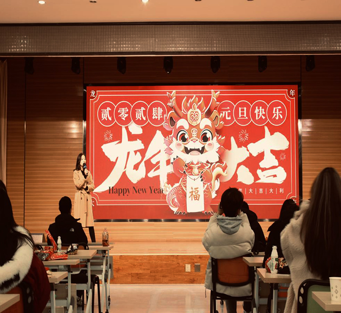 本网讯 为丰富校园文化生活,构建和谐校园,发掘培养员工的表现创造能力,深入推进学校的素质教育,经济系2023级国际经济与贸易专业和商务管理系2023级电子商务专业1月2日联合举办了元旦联欢晚会。