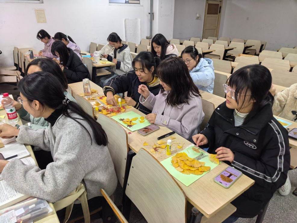 活动伊始,工作人员早早备好落叶、书签、干花、麻绳等创作物料及工具,同学们怀揣着对冬日的期待准时赴约,活动现场氛围温馨整洁。在沉浸式体验中,同学们开启专属冬日的创作之旅。两个小时的创作时光里,活动现场满是温馨笑语。同学们相互交流技巧,分享冬日趣事,每一处细节的打磨,每一份创意的迸发,都凝聚着大家对生活的热爱,也传递着冬日里的温暖情谊。