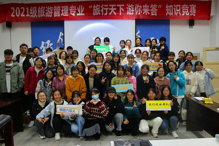 本网讯 为丰富校园文化生活,激发同学们学习热情,深化同学们对专业相关知识的了解,培养同学们的团队意识,tyc8722太阳集团11月16日晚在经管楼103举办“旅行天下,游你来答”知识竞赛,21级旅游管理专业的60名同学全部参与。