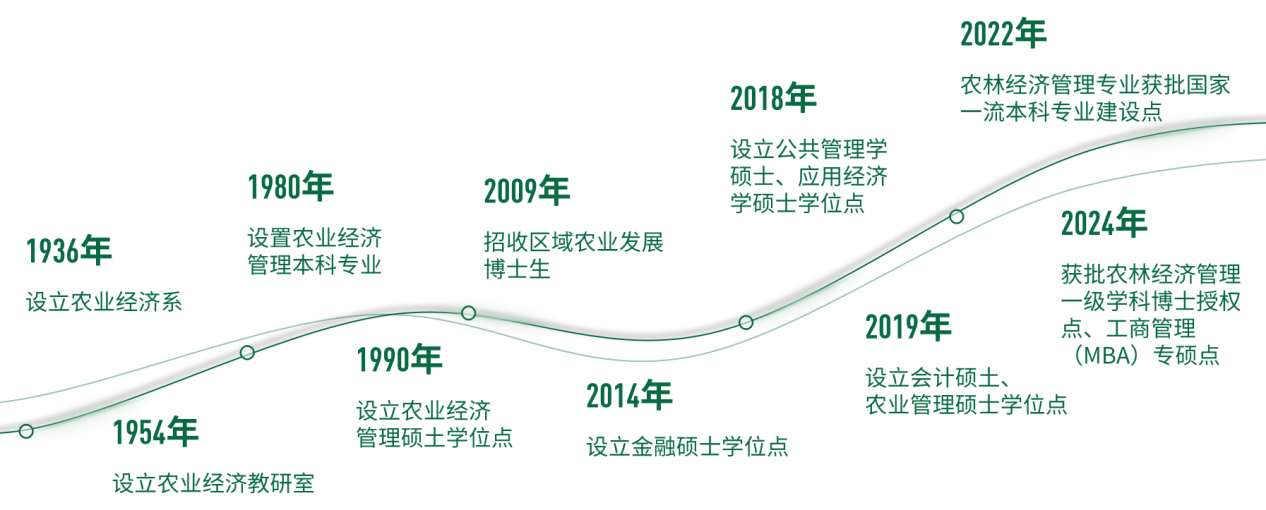 tyc8722太阳集团办学历史悠久,源于1936年7月设立的农业经济系。1980年恢复本科招生,1991年开始招收硕士研究生,2009年招收区域农业发展博士生,2022年农林经济管理专业获批国家一流本科专业建设点,2024年学院获批农林经济管理一级学科博士授权点。