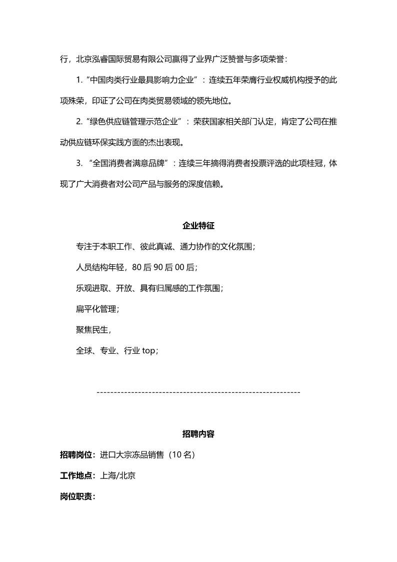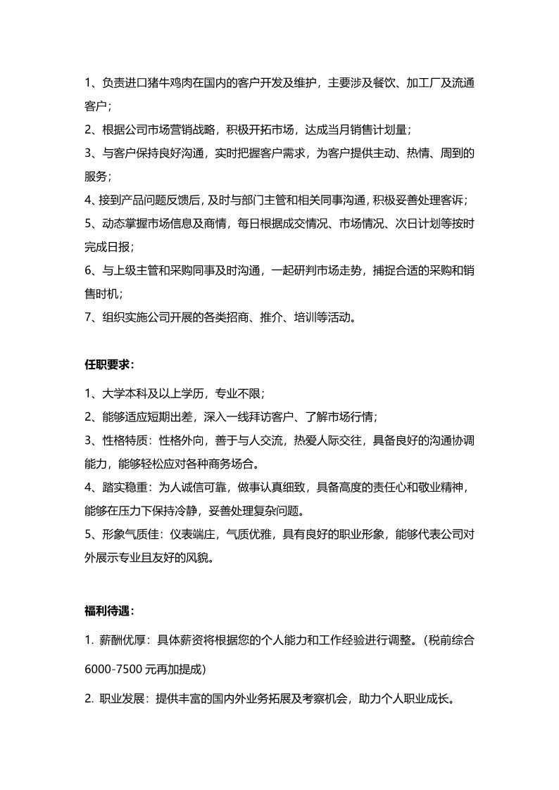 [太阳]招聘岗位:进口大宗冻品销售