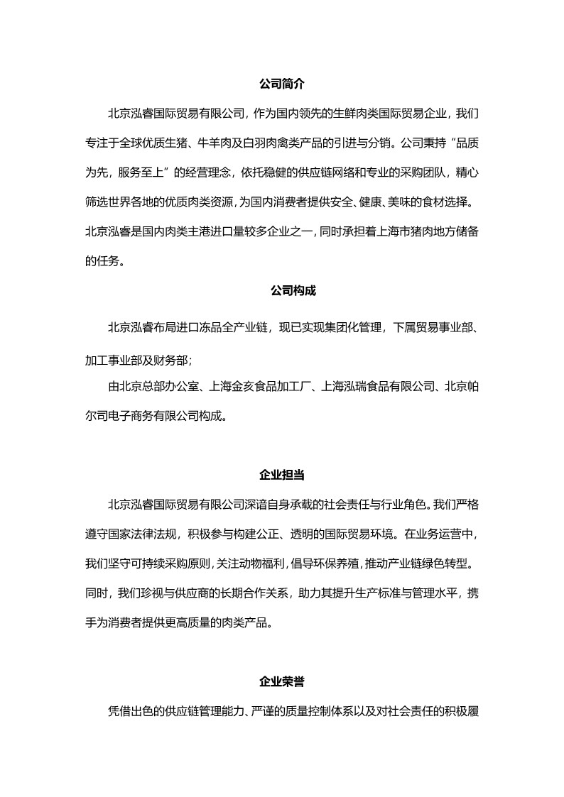 北京泓睿国际贸易有限公司/上海泓瑞食品有限公司: