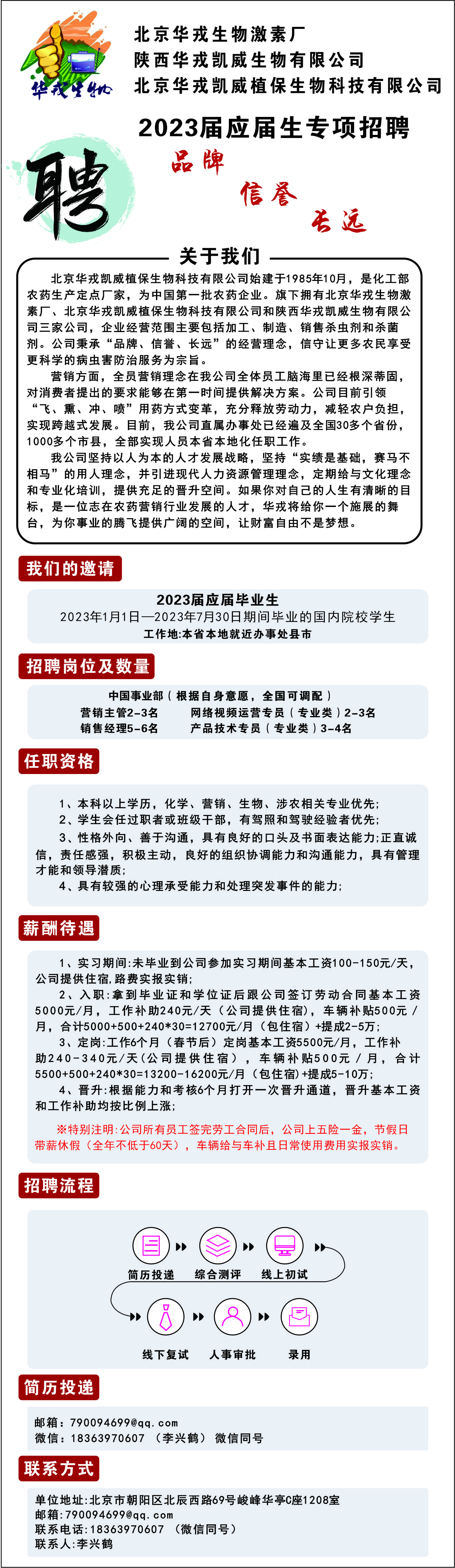 【招聘简章】北京华戎凯威植保生物科技有限公司