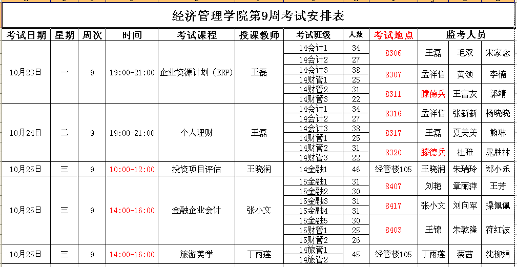 tyc8722太阳集团第9周考试安排表