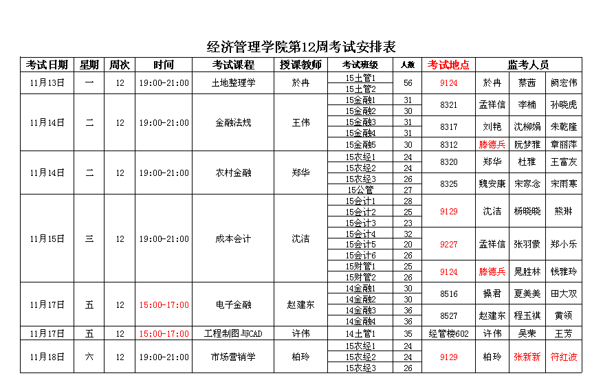 tyc8722太阳集团第12周考试安排表