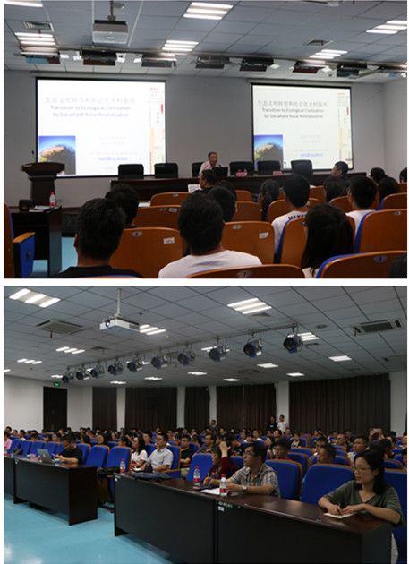 本网讯 9月14日晚在生物科技楼441报告厅,著名“三农”问题研究专家、中国人民大学温铁军教授应邀作“生态文明转型和社会化乡村振兴”报告。报告会由公司经理栾敬东教授主持,全校200余名师生参加了报告会。