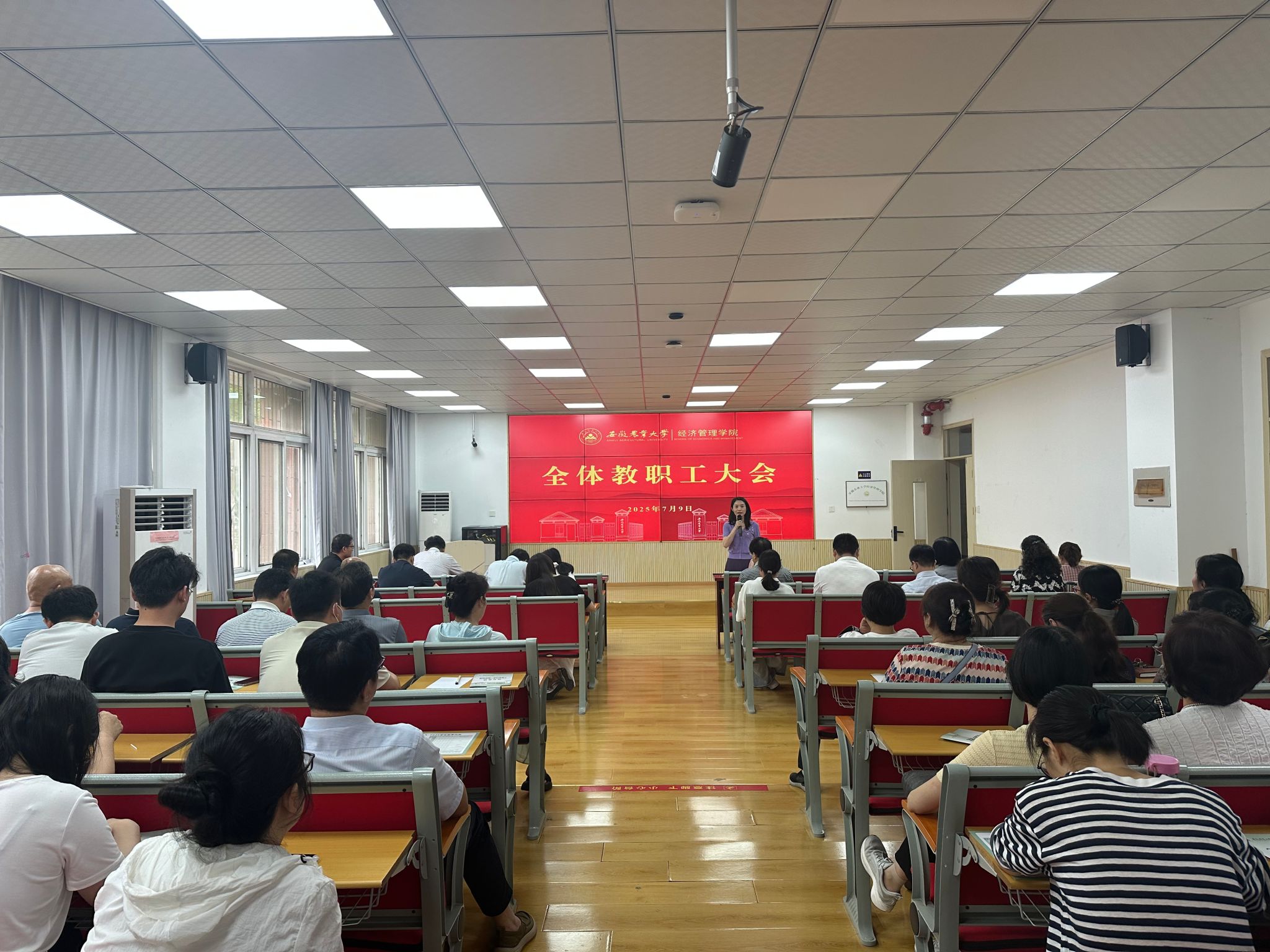 本网讯 7月9日下午,tyc8722太阳集团在经管楼103会议室召开全体教职工大会部署暑期重点工作,学院领导班子及全体教职工参加会议,会议由公司党委副书记、纪委书记周涛主持。