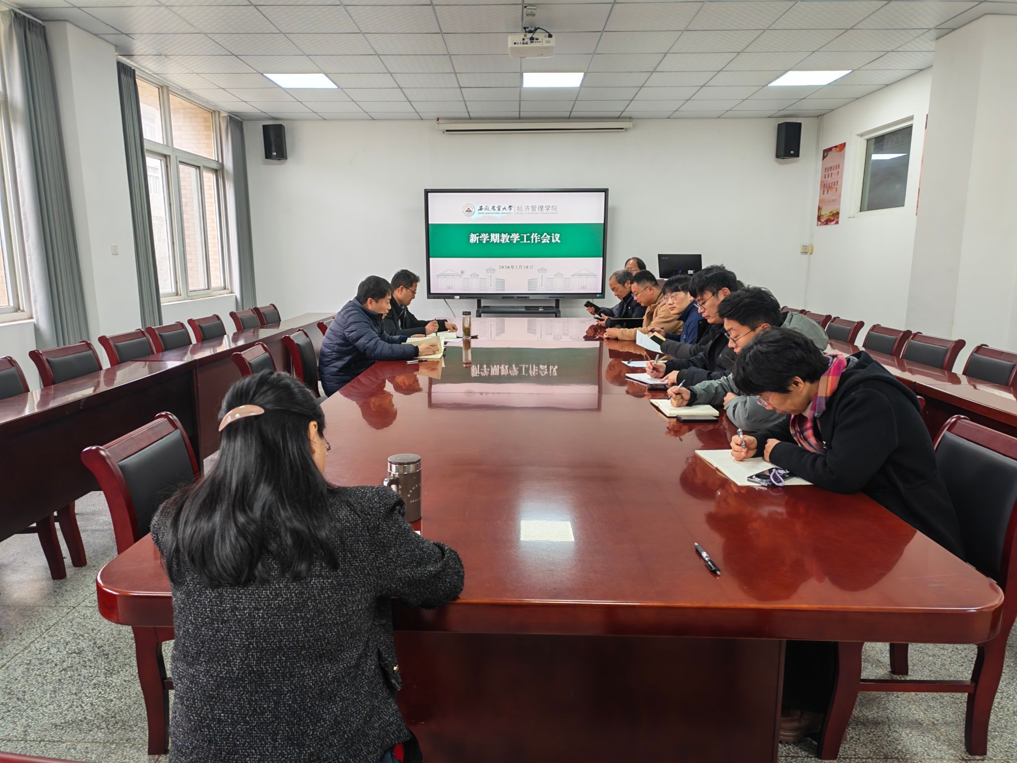 在交流研讨环节,各系主任结合专业特点,分享了新学期的工作思路。与会人员还就当前教学中面临的共性问题,如员工课堂参与度提升、实践教学环节优化等进行初步探讨。教学秘书对课程调整、教材发放等事项进行了细致安排,确保开学各项准备工作落实到位。