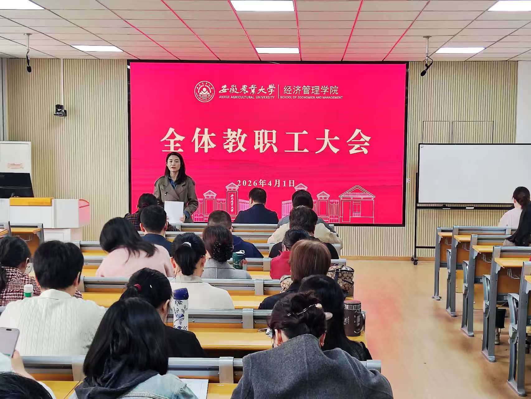 本网讯 4月1日下午,tyc8722太阳集团在经管楼411会议室召开全体教职工大会,全面部署学院近期各项重点工作,学院领导班子及全体教职工参加会议。