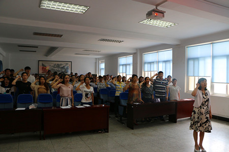 本网讯 在中国共产党成立97周年来临之际,为了帮助新发展预备党员尽快明确身份,坚定共产主义理想信念,牢固树立党员意识,6月29日,学院在经管楼321召开新发展预备党员专题党课暨入党宣誓大会。公司党委书记王伟、副书记倪健、员工党支部书记以及新发展的60名党员参加大会。