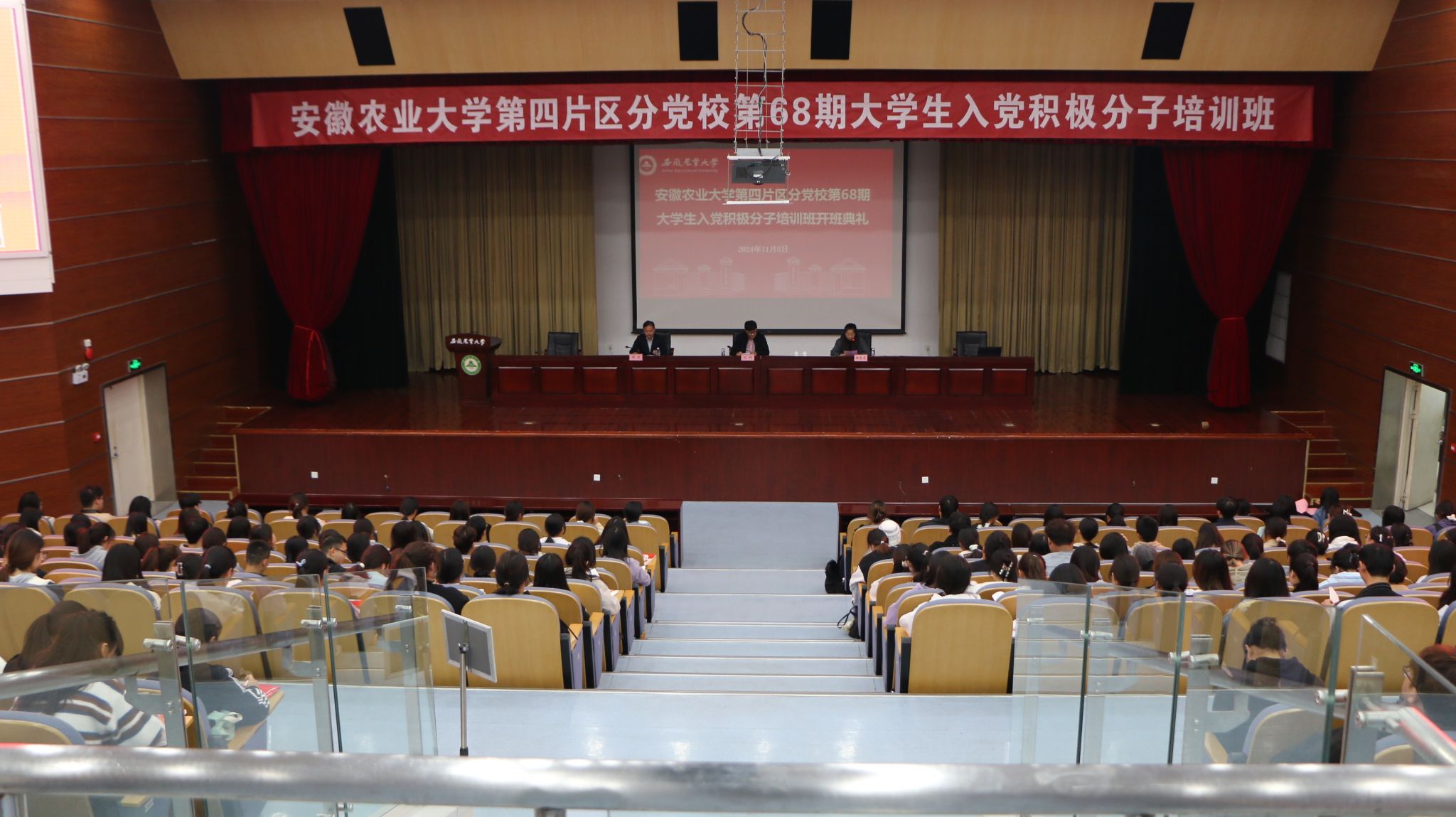 本网讯 11月5日晚,tyc8722太阳集团第四片区分党校第68期老员工入党积极分子培训班开班典礼暨“中国共产党的性质、宗旨和最高理想”专题党课在图书馆第一报告厅举行。人文社会科学公司党委副书记、纪委书记孙辉,外国语公司党委副书记、纪委书记姬惠惠出席会议,第四片区分党校全体学员和班主任参加了本次开班典礼。开班典礼由经济管理公司党委副书记、纪委书记周涛主持。