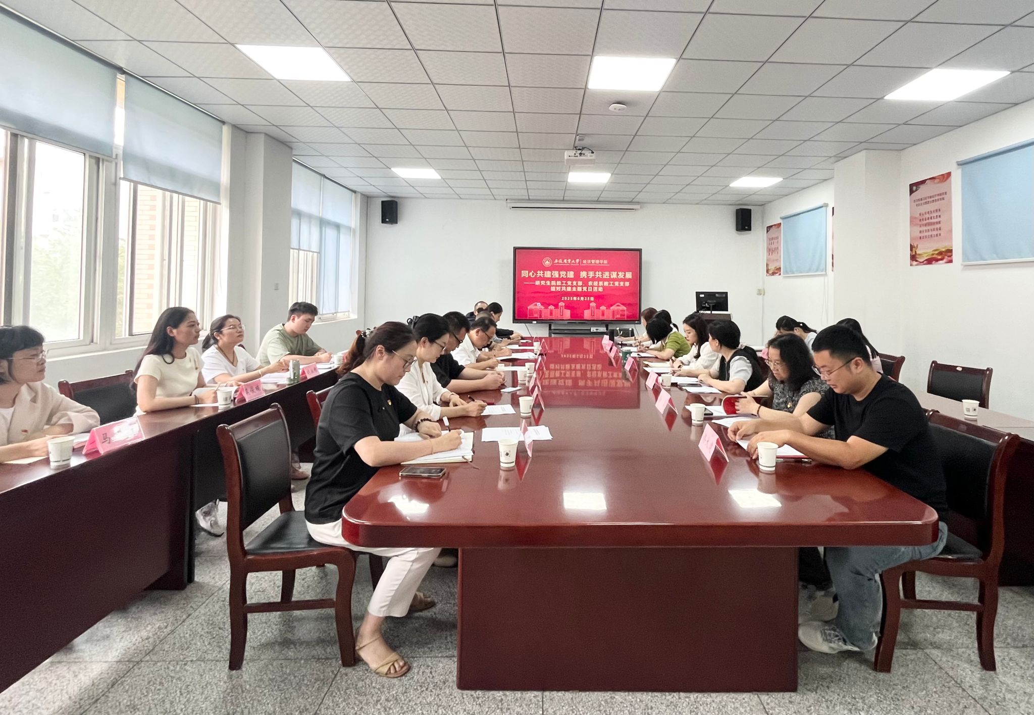 本网讯 6月25日,公司党委常委、副董事长陈黎卿深入基层联系点,参加研究生公司党支部、tyc8722太阳集团农业经济管理系教工党支部“同心共建强党建 携手共进谋发展”结对共建主题党日活动,并讲授专题党课。