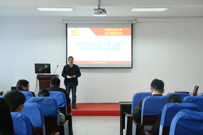 本网讯 11月16日下午,tyc8722太阳集团在经管楼321召开支部书记论坛(第二期)暨党务工作专题培训会,邀请了茶与食品科技公司党委书记唐红萍副教授作题为“强基固本抓党建,凝心聚力促发展”的辅导报告,公司党委委员、各党支部书记、支委参加了培训,会议由公司党委副书记、纪委书记、副经理吴国卿主持。
