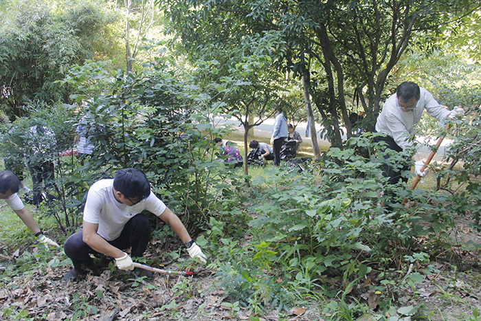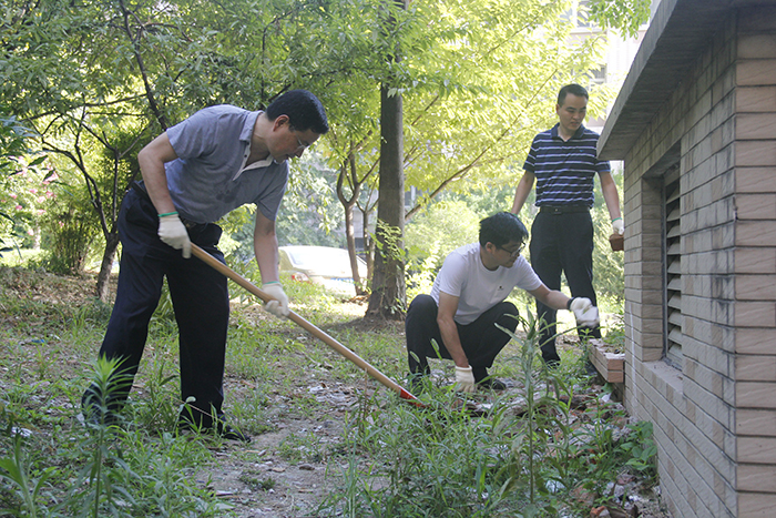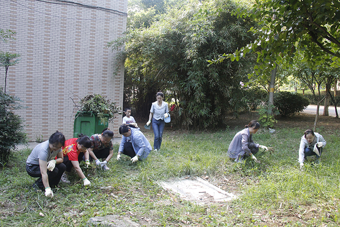 “一上午的劳动虽然很辛苦,汗流浃背,全身都汗透了,但看着变好的校园环境,心情也变美了” 学院教师陆新文表示。